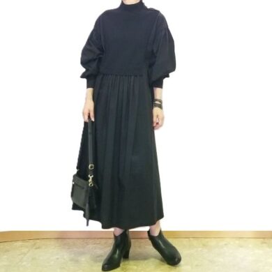 ちょっとモードなペプラムスリーブのニットワンピース & 50代からのマイコーディネート
