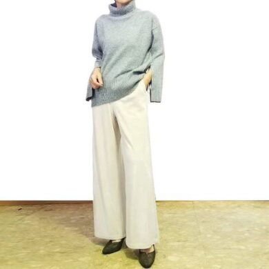 大人の冬ボトムにおすすめ♪裏起毛でもスッキリ見えるアイボリーのワイドパンツ&50代からのコーデ