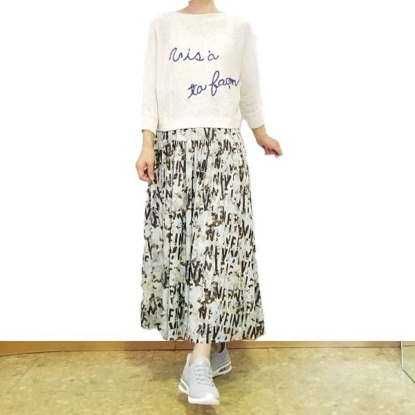ボタニカルロゴのプリントスカートと