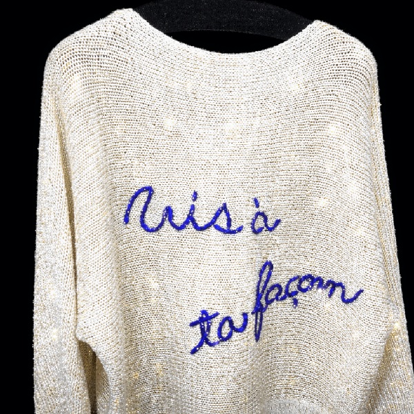 ちょっと短めの着丈が決め手のATELIER SIXの定番ロゴニットを、シャンパンゴールドのラメニットで仕上げました。
