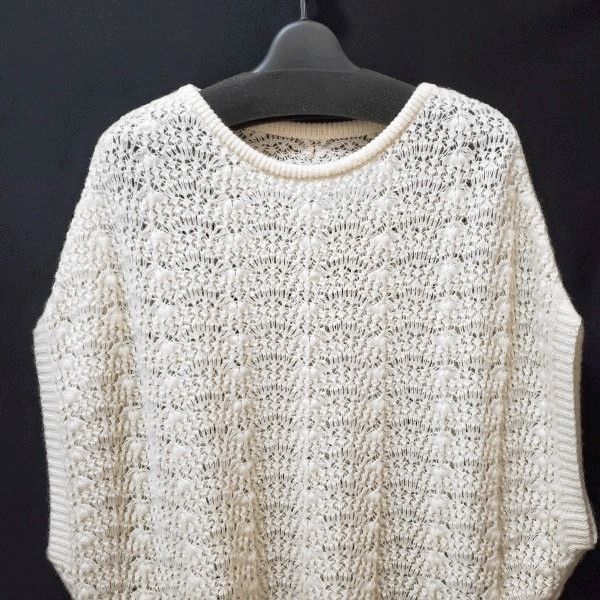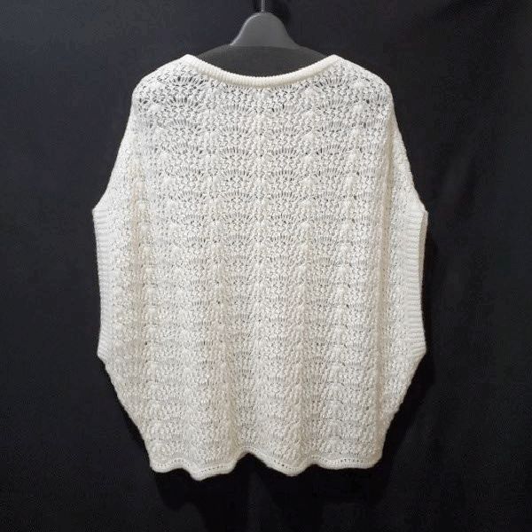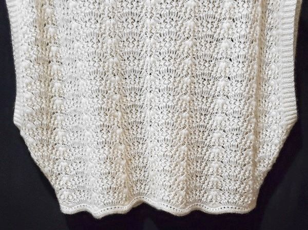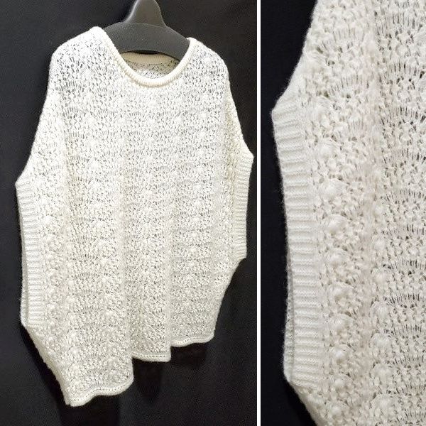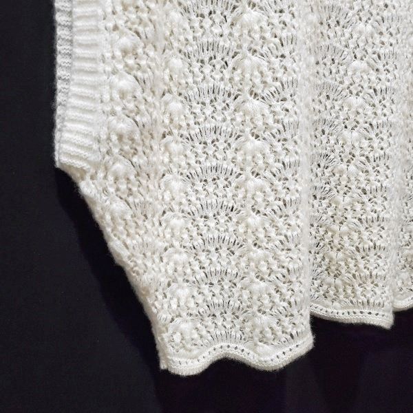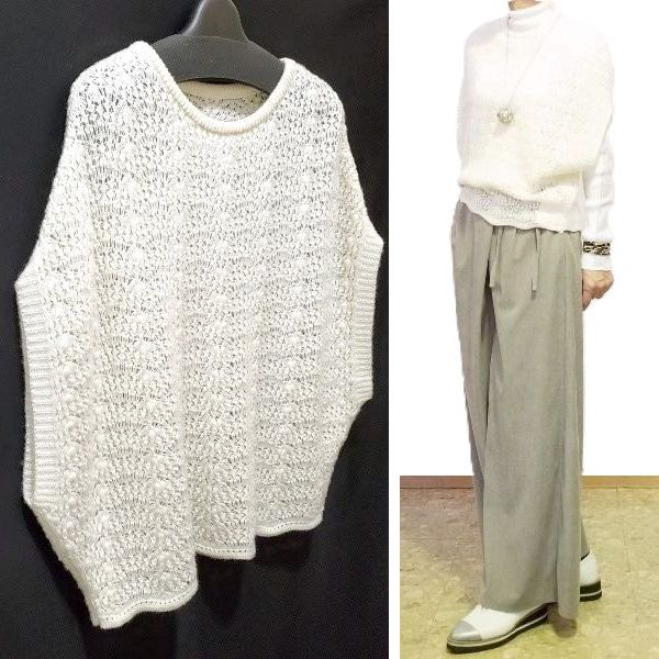 起毛ウールの透かし編みが優しい、ゆったりドロップショルダーのニットベストです。