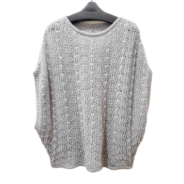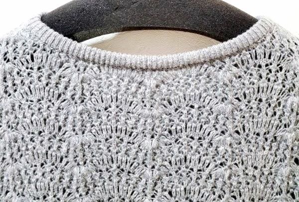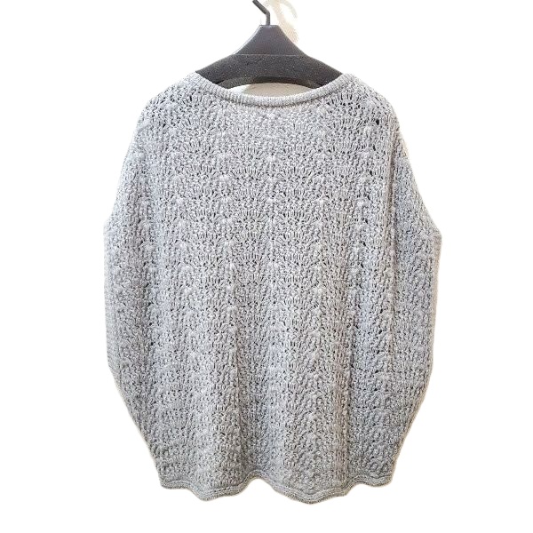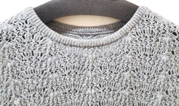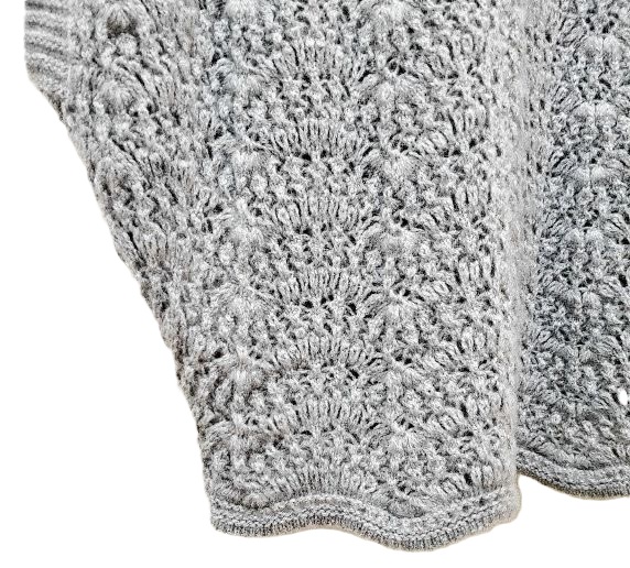 大きく開いた袖口は表編み裏編みが2段毎段々になった
