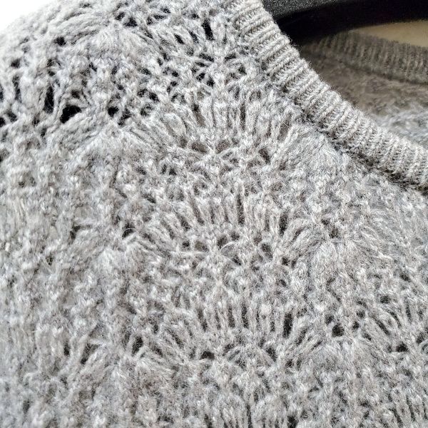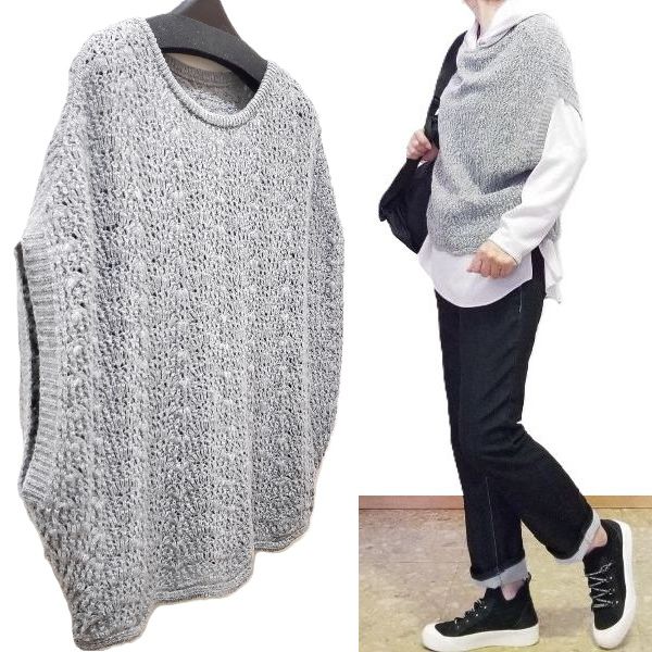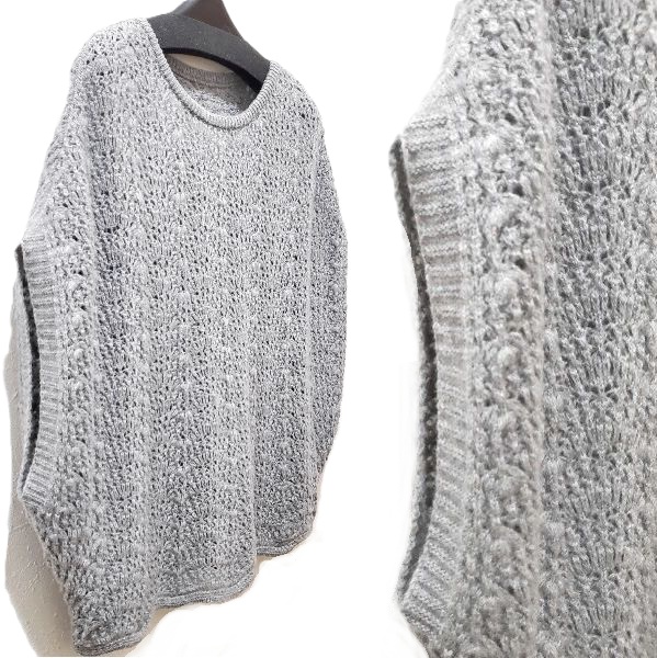 本日は、透かし編みが優しいドロップショルダーのニットベストをご紹介させて頂きます。